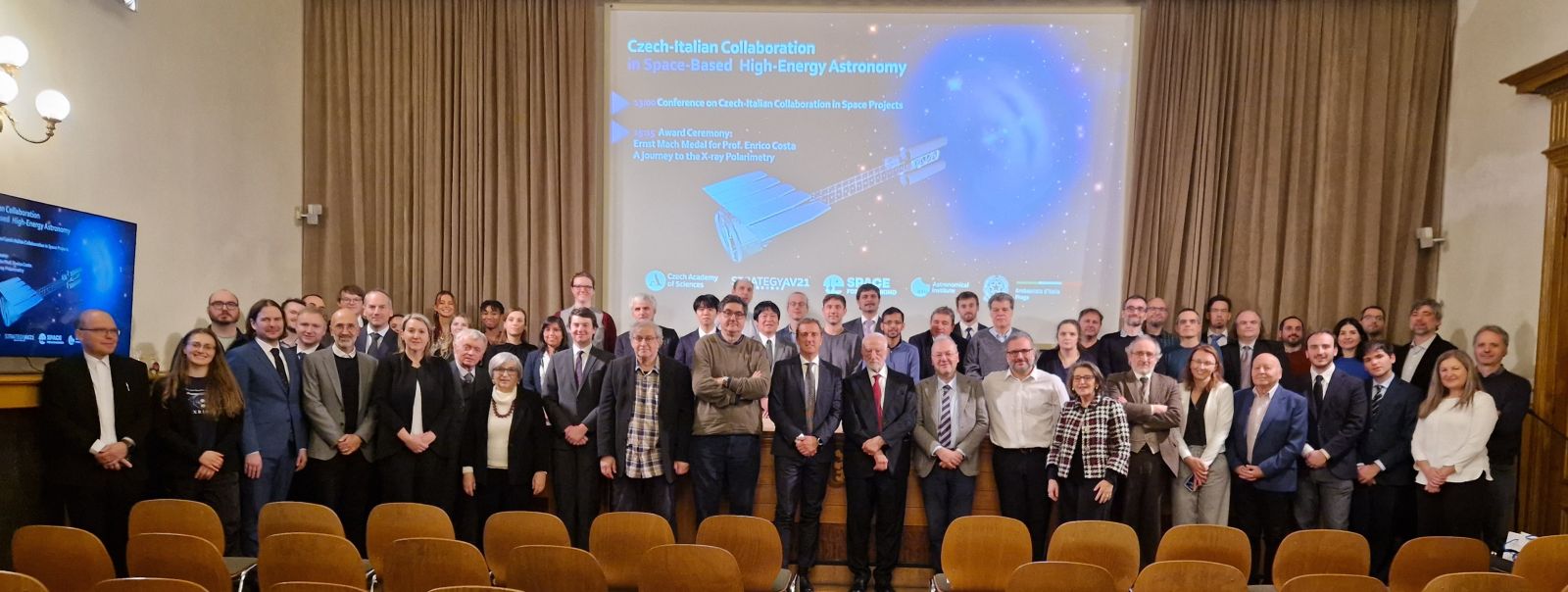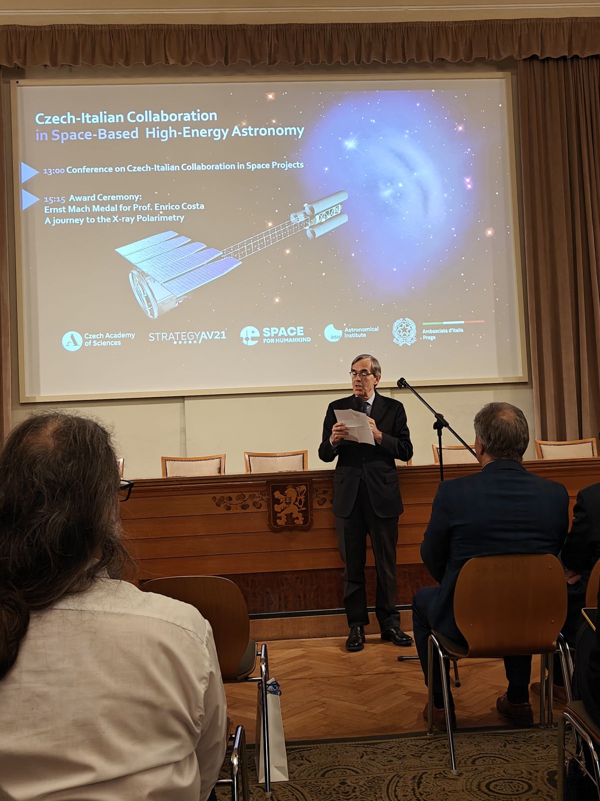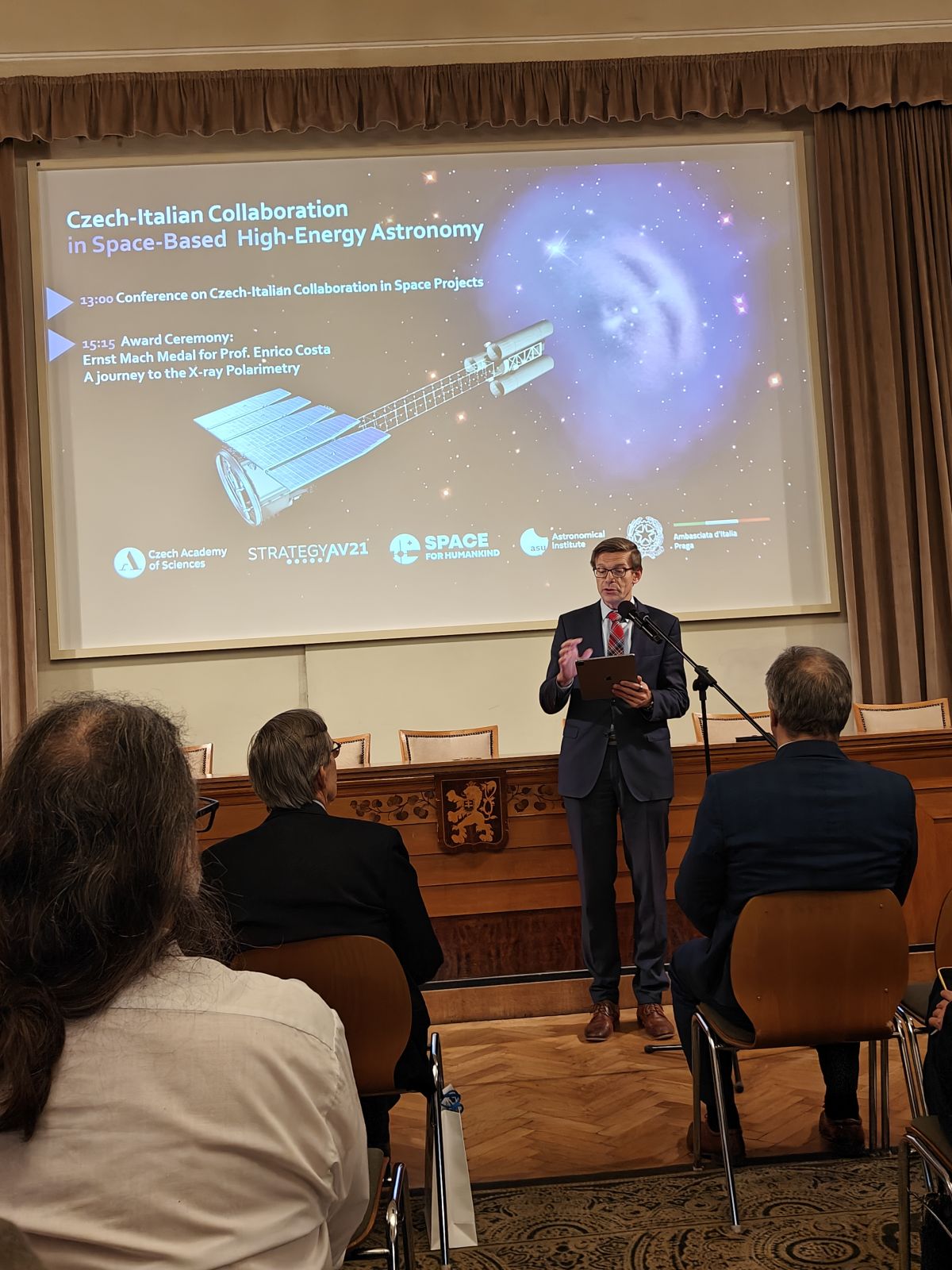 Dne 24. listopadu 2025 proběhla v historické budově Akademie věd ČR na Národní třídě prestižní konference věnovaná česko-italské spolupráci v oblasti kosmických misí vysokoenergetické astronomie.